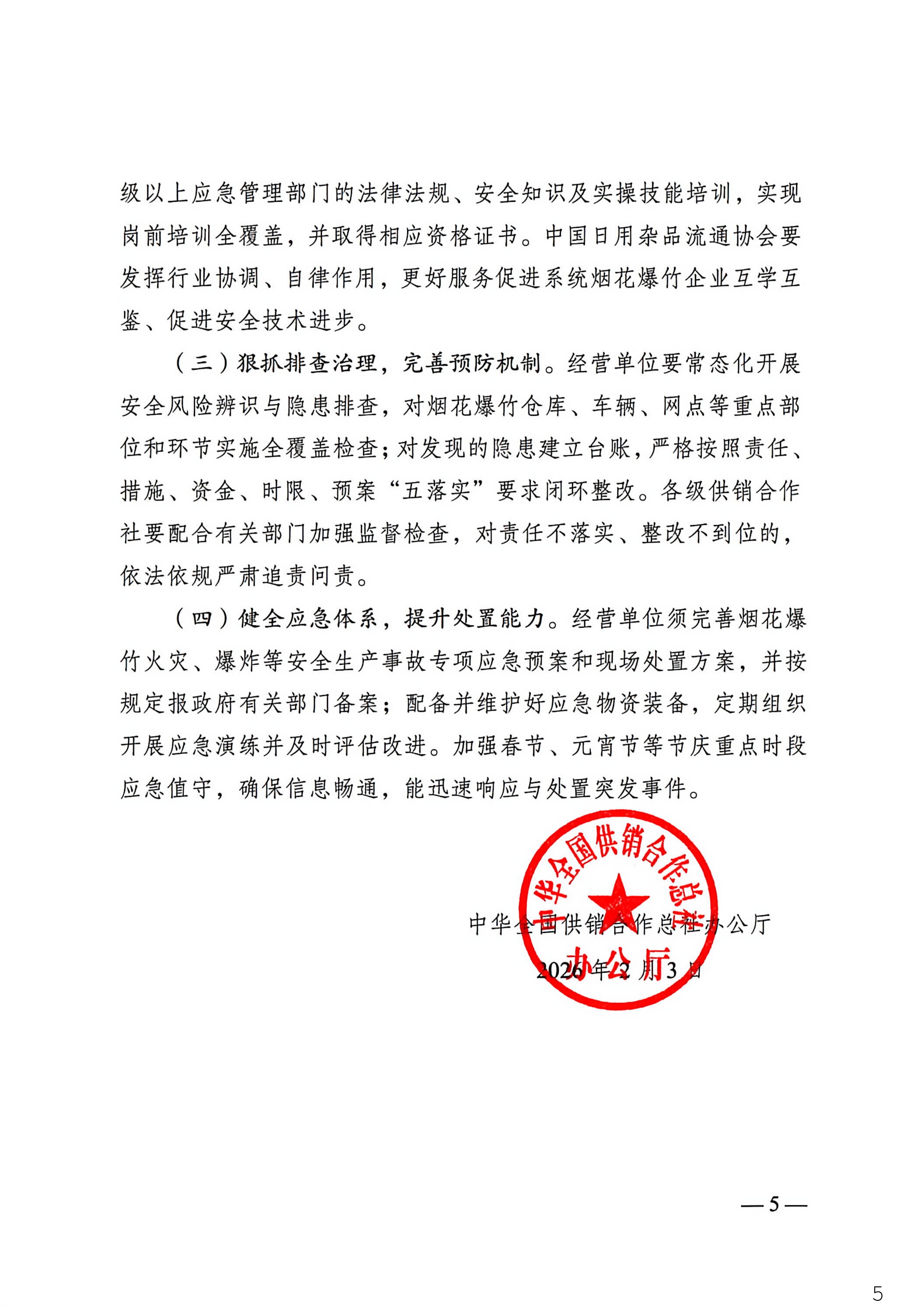 中华全国供销合作总社办公厅关于加强供销合作社系统烟花爆竹经营安全管理的通知